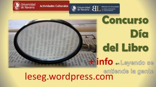 Como cada año, en el blog de lectura de la Biblioteca, Leyendo se entiende la gente, celebraremos el 23 de abril Día del Libro por todo lo alto. En esta ocasión hemos organizado un concurso en colaboración con Actividades Culturales. Se trata de descubrir el título de un libro y su autor a través de las pistas que os iremos dando a lo largo de la semana previa al 23 de abril.