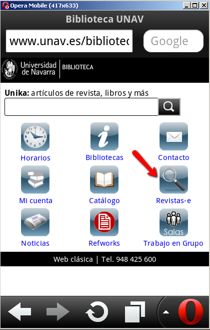 - la navegación móvil, también se activa a través de la búsqueda en UniKa