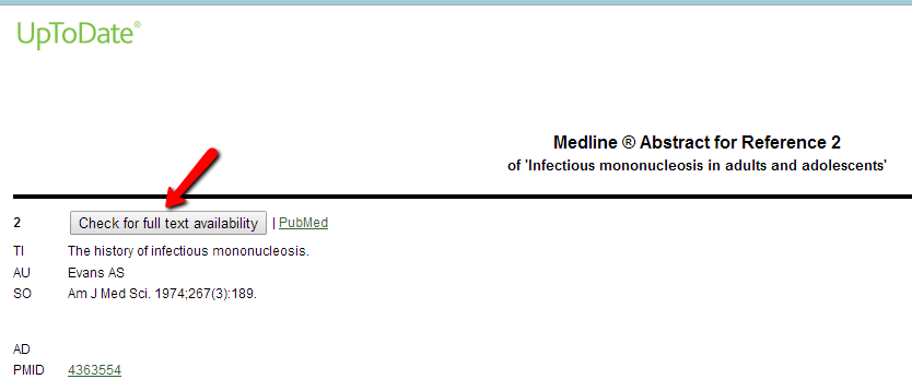 Se ha activado el enlace a SABIO desde UpToDate. Con este enlace es posible conocer si la biblioteca dispone del texto completo del artículo que se quiere consultar. El icono de enlace aparece en la pantalla correspondiente al Abstract de Medline de cualquiera de las citas bibliográficas.