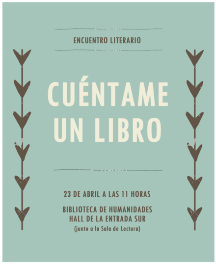2. Como novedad, este año vamos a celebrar la actividad Cuéntame un libro. Diferentes voluntarios participarán de este encuentro en el vestíbulo de Sala de Lectura (Biblioteca de Humanidades, Edificio Antiguo), que comenzará a las 11 h. y en el que nos contarán de manera breve el libro que más les ha marcado. Os invitamos a participar a todo aquel que se acerque.