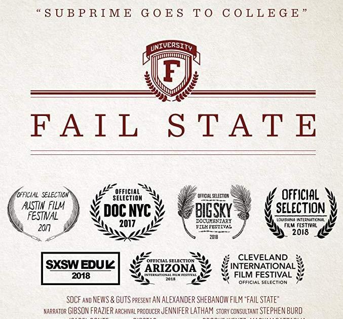 Fail State investiga el lado oscuro de la educación superior estadounidense, detallando décadas de decisiones políticas en Washington D. C. que han dado lugar a una industria universitaria poderosa y altamente peligrosa, con la única finalidad de lucrarse.