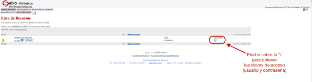 El acceso a este recurso se realiza a través de Sabio y con claves de acceso. Puede obtener estas claves en la información de producto (tal y como se indica en la imagen).