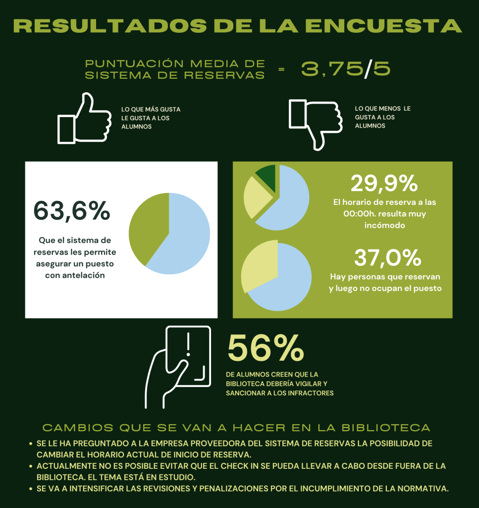 Por ese motivo, la Biblioteca está intensificando las revisiones y las penalizaciones. - resulta muy incómodo el horario de reserva a las 00:00 h., con un 29,9 % de los encuestados.