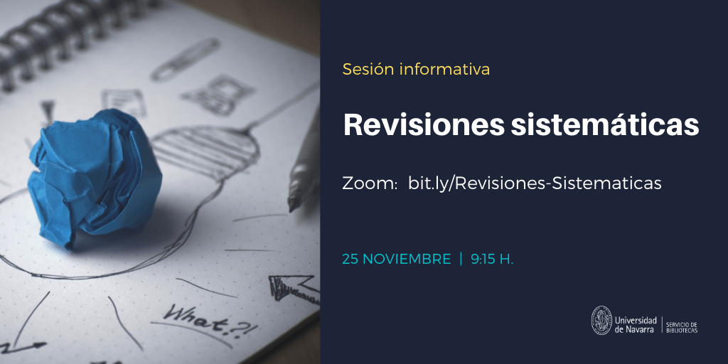 La sesión está dirigido a los miembros de Tecnun y se ofrecerá vía zoom bit.ly/Revisiones-Sistematicas