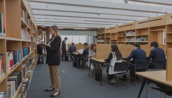 Instalaciones y servicios de la sede de la Biblioteca del Campus de Madrid de la Universidad de Navarra.